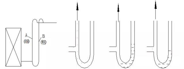 2)直通式貯液器的接管管徑大小就按滿負(fù)荷運(yùn)行時(shí)液體流速不大于0.5m/s來選擇。(直通式貯液器左側(cè)圖,波動(dòng)式儲液器右側(cè)圖)