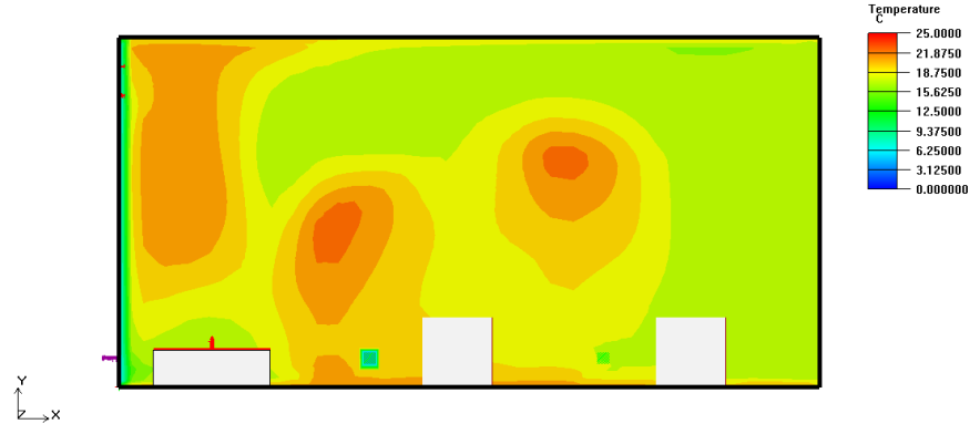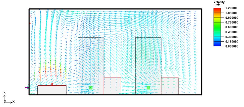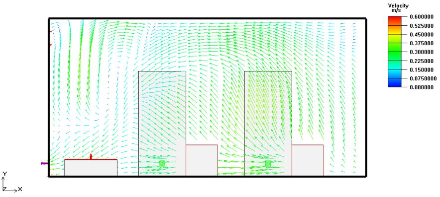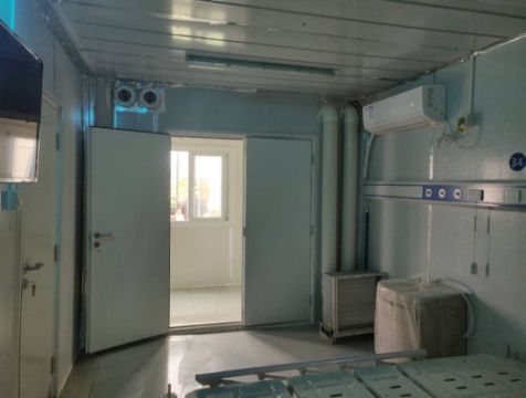 雷神山醫院建設用地面積約22萬平方米,總建筑面積約7.9萬平方米,整體規劃按照傳染病醫院標準設計,設計用于收治已確診的新型冠狀病毒感染肺炎患者的醫院。根據用地情況將東、西兩區分別規劃為隔離醫療區和醫護生活區,并配備有相關運維用房,病床總床位數建設目標為1600 床,可容納醫護人員約2300人。 隔離醫療區總建筑面積為52200平方米,為新建一層臨時建筑,設有衛生通過單元、病區護理單元、醫技單元、接診區。護理單元為集裝箱拼接式建筑,外形尺寸(長×寬×高)為3×6×2.6m,室內凈高2.4m;醫技區為鋼結構板房建筑,建筑高度4.5m。隔離醫療區北側設有污水處理站、微波消毒間、垃圾暫存庫、垃圾焚燒間、液氧站、正負壓站房等配套設施。 ┃ 雷神山醫院 俯瞰效果圖 ┃ 雷神山醫院 俯瞰實景圖 03 通風空調系統設計原則 Design Principles 空調設計參數 設計空調室外參數主要考慮疫情爆發期間的武漢冬季氣象條件并考慮預期氣候條件。參照國家相關規范,病房區、醫護區、醫技區主要房間冬季室內設計溫度為18~22℃,主要病人及醫護通道的設計溫度不低于18℃。 空調通風系統 為避免交叉感染,病房區、醫護區、醫技區的主要房間均采用熱泵型分體空調。醫技區負壓檢驗、負壓ICU、負壓手術室采用直膨式全空氣型凈化空調機組全新風運行,送風管道設有電加熱器。電加熱器設置分檔調節并采取無風斷電保護措施。 漂浮在空氣中或附著在灰塵顆粒上的病菌會附著在空調機組的盤管上,并隨冷凝水排出,這些病毒可能導致人員致病。因此空調的冷凝水不應單獨散排至室外,均分區集中收集,并應隨各區污水、廢水排放集中收集。 在通風空調設計中應致力于采用有序的壓力梯度控制措施,合理控制氣流流向,不同污染等級區域壓力梯度的設置應符合定向氣流組織原則,應保證氣流從清潔區→半污染區→污染區方向流動。醫護區相對傳染區為正壓,控制負壓隔離病房、負壓檢驗室室內負壓值,避免潔凈空氣與污染空氣的交叉, 減少相互感染概率,有效阻斷病毒傳播,保證醫護人員安全健康。負壓隔離病房最小換氣次數為12次/h,污染區最小換氣次數為6次/h,清潔區最小換氣次數為3次/h。 所有區域送風系統設初、中、高三級過濾保證送風潔凈度,同時應采取有效的空氣凈化消毒措施,最大限度降低負壓隔離病房等污染區的排風對周圍環境的影響。送風過濾單元、排風高效過濾器前后設置壓差檢測、報警裝置,當壓差數值超過設定值時傳感器報警,相應進行設備更換。 G2初效過濾器 F7中效過濾器 H13高效過濾器 設備與材料 結合當前應急臨時醫院建設時間短、要求高,部分設備材料供應不滿足建設工期要求的特點,因地制宜做好暖通空調的設計工作是我們重點考慮的問題。設計過程中團隊派專人與各大設備供應商對接,盡量選用成熟可靠、庫存量大、運輸快速、廠商捐贈的設備,節省產品的采購、調貨時間。同時方便施工單位快速安裝、調試簡單。選用的通風空調管道滿足建設周期要求,制作安裝簡單,氣密性好。通過上述措施,在保證系統運行可靠的前提下極大地縮短了施工周期。 04 病房區氣流組織與壓差控制措施 Control Measure 區域功能 病房區主要由安置病人的負壓隔離病房及其衛生間、緩沖間、醫護人員通行的走廊等部分組成。 設計方案 負壓隔離病房區域采取壓差控制措施,保證氣流從半污染區→污染區方向流動,病房維持-10~-15Pa,相鄰房間維持不小于5Pa的壓力梯度。病房與醫護走廊的墻面上裝有顯示不同區域壓力差值的微壓差計,便于醫護和維護人員實時觀察房間壓力梯度與送排風系統運行是否正常。 污染區、半污染區分別設置獨立的送/排風系統,風機采用低噪音高效離心風機箱且一用一備,排風口至距地4.5米以上。設計將五至六間病房及其衛生間合用一套送/排風系統,極大的方便了系統調試,同時有效保證了壓力梯度,風機風量的合理控制也避免了風機運行噪音和振動對病房人員的影響。病房區送/排風系統及氣流組織示意圖如下: 氣流組織模擬 為檢驗病房氣流組織設計效果,對病房的氣流組織進行了模擬論證。 模型描述:建立5.8m×3m×2.4m(長×寬×高)的病房空間,2張單人床尺寸為2m×0.9m,床頭柜尺寸為0.6m×0.6m×0.6m,分體空調室內機尺寸為1.0m×0.4m×0.32m(長×高×深),房間采用上側送風下側排風的通風系統,2個送風口尺寸均為Ф150,排風口尺寸400mm×400mm,三維物理模型如圖所示: ┃ 三維物理模型示意圖 房間上部單個送風口送風量為250 m3/h,總送風量為500m3/h,送風溫度為20℃,水平送風;下部排風口排風量為700m3/h,水平排風。分體空調風量為1000m3/h,送風溫度為30℃,斜向下45°出風。內墻和外墻分別依據房間溫度和環境溫度采用等壁溫邊界條件,計算中不考慮輻射模型。通過模擬得到如下結果: (1)病房速度場和溫度場 ┃ Z=0.6m(病人平躺時頭部的高度)的溫度場 病人平躺時,頭部處的速度為0.25~0.35m/s,溫度為19~22℃,滿足舒適度的要求。 ┃ Z=1.7m(病人站立時頭部的高度)的溫度場 病人站立時,病房內主要活動區(除空調出風口處)頭部處的速度為0.3~0.5m/s,溫度為18~25℃。 (2)病房內氣流組織 ┃ 病房內部速度跡線 通過模擬得到如圖所示的速度跡線,由圖可見,采用設計方案(上側送風下側排風)時床頭處于回流區,整個房間易形成良好的定向氣流,通風系統可以有效及時排除病房