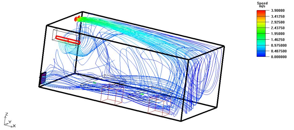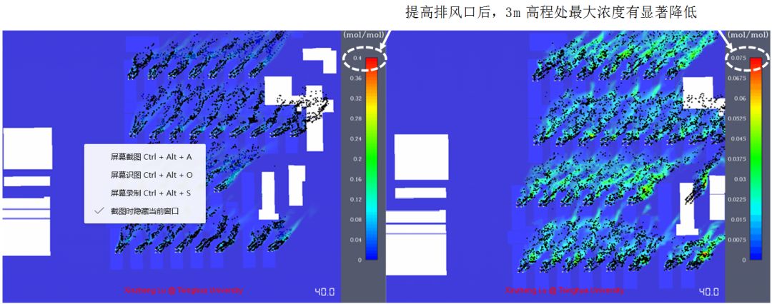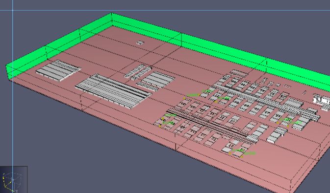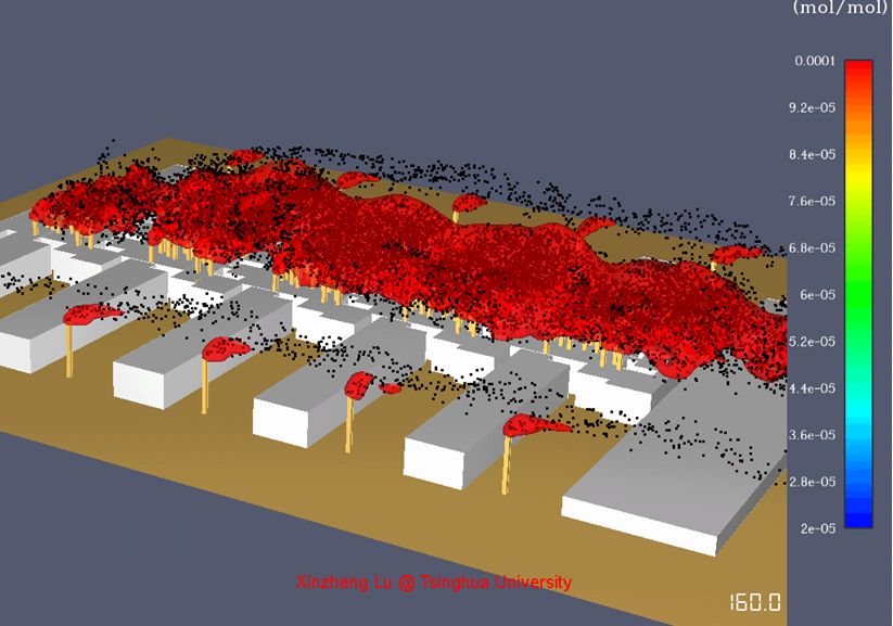 在設計過程中為充分評估污染區廢氣排放是否對項目周圍環境造成影響,設計過程中得到清華大學陸新征教授及團隊的大力支持。陸新征教授及團隊提出了臨時醫院排風環境影響的快速模擬方法。本方法以開源流體力學計算軟件FDS為基礎,實現了臨時醫院建筑的快速建模;谠朴嬎闫脚_的分布式計算以及有害空氣流動的監測和可視化,為臨時醫院設計階段的快速分析提供了專門工具。 ┃ 有害氣體軌跡及濃度等值面圖 ┃ 雷神山醫院三維FDS模型 主要結論及對設計的指導 1. 根據江億等研究,對于SARS病毒,稀釋1萬倍后不再具備傳播性。模擬結果證明4.5m排風口高程可以滿足要求新風口空氣稀釋1萬倍的要求。 2. 將排風口高程提高到4.5m后,可有效降低新風口高程面(3m)污染空氣相對濃度。 3. 為確保負壓隔離病房區域醫護人員的健康安全及保護室外環境,本項目送風系統采用粗效(G2)+中效(F7)+高效(H13)三級過濾,排風系統采用高效(H13)過濾后接至4.5m高空排放,設計方案符合模擬預期。 09 結 語 Epilogue 此次雷神山醫院暖通設計先經過專業評審確定技術方案,邊設計、邊校對、邊審核、邊修改,提高工作效率,避免返工,合理穩妥的設計方案就是雷神山醫院建設的最大保障。在項目施工過程中積極主動與項目建設各方溝通配合,不分白天黑夜每天派有經驗的設計師駐場巡檢,第一時間發現和解決施工環節中存在的問題,同時對重點難點處的施工予以現場指導。在疫情發展迅猛、項目建設周期極短、設備采購壓力極大的背景下,設計團隊的每個人頂住壓力,迎難而上,為有力抗擊疫情作出了自己應有的貢獻,用中南院暖通人的專業水準和職業操守為雷神山醫院的順利建設保駕護航。 來源:中南建筑設計院股份有限公司